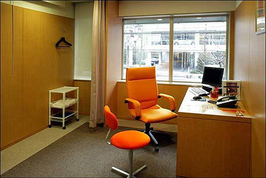 オレンジカラーが目を引く診察室。