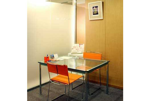 大きな曇りガラスがある完全個室のカウンセリングルーム。