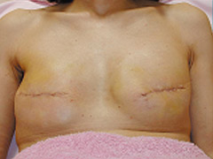 ある日、エキスパンダーの入っているあたりが赤くなったり、熱感を持ったりしたら、まず自分が心身ともに疲れていないかを考えてください。そして局所を冷却して栄養と休養をとり、すぐに専門医の診察を受けてください。そうすればたいがいの場合は中に浸出液と言われる透明な液が溜まっており、これを穿刺すれば大事にいたらず治ってしまいます。しかし『家にある抗生剤を飲んだから大丈夫』とか、『近所の内科の先生に点滴してもらったから』というのでは、逆に本当に感染を起こしたときの耐性菌を増やすことにもなりかねません。