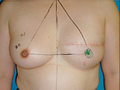 乳がん手術で乳輪乳頭を残した例でも、位置が対称的でない場合はこれを修正することはできます。