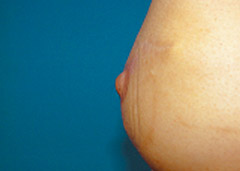 この方法だと、皮弁の中身が伸展された脂肪になるため、支柱が柔らかく、ブラジャーの装着やうつぶせ寝でつぶされると、長期経過で平坦化することがまれではありません。しかし、健側をいじりたくない方にはとても良い方法です。