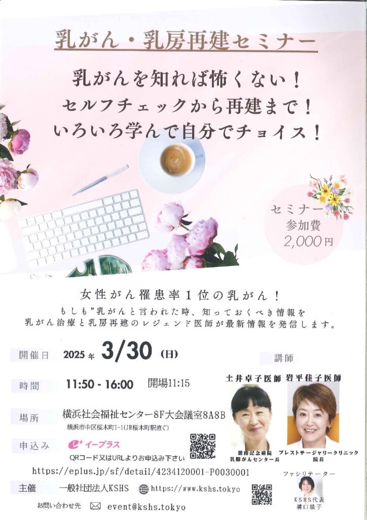 2025年3月30日(日)に桜木町で開催されます一般社団法人KSHS 主催の乳がん・乳房再建セミナー